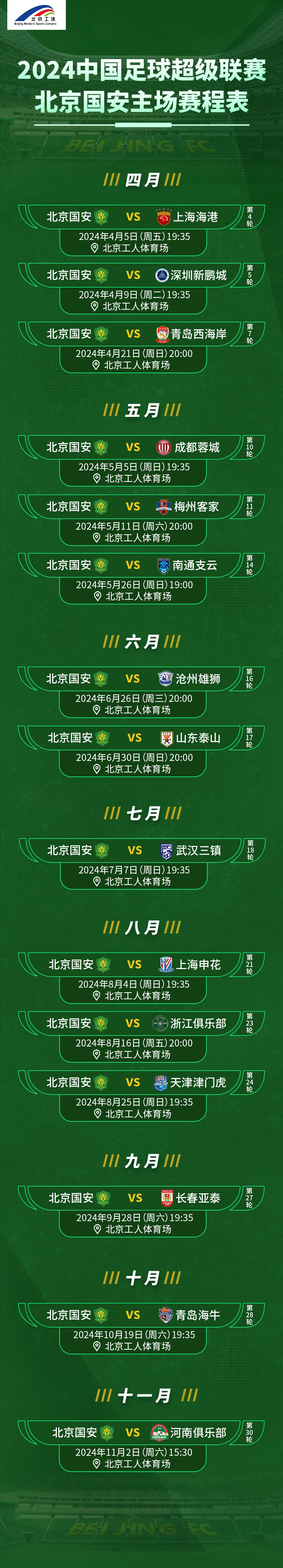 2024年中超联赛已开启,在北京工体举办的中超联赛共计15场,首场赛事将于4月5日拉开序幕。