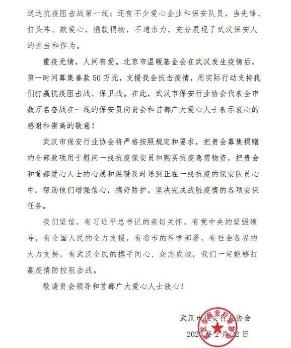 【温暖武汉】致广大爱心人士和北京市温暖基金会的感谢信