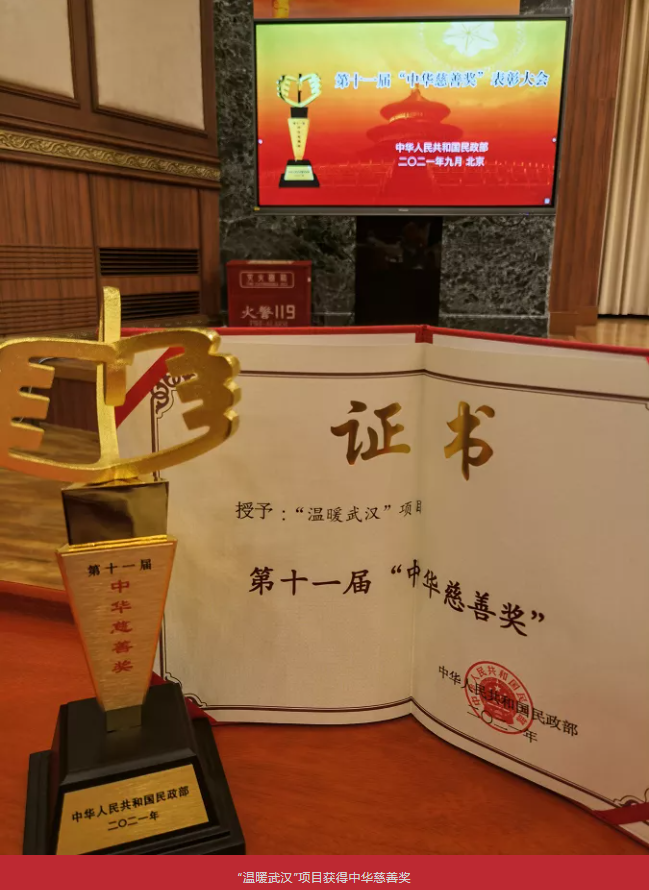 北京市温暖基金会“温暖武汉”项目凭借2020年以来在抗击新冠肺炎疫情慈善领域的突出贡献,荣获此次“中华慈善奖”。这也是北京市温暖基金会首次获得由民政部颁发的我国公益慈善领域政府最高奖——“中华慈善奖”。