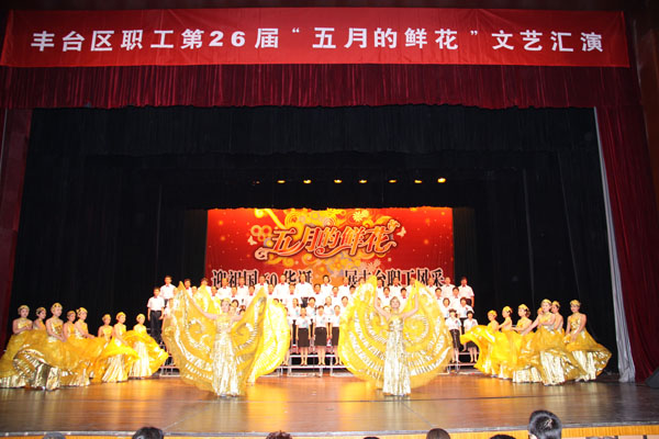 新中国成立六十周年前夕,丰台区总工会于6月23日、24日在中国评剧院举行《迎祖国60华诞,展丰台职工风采》——丰台区职工第26届“五月的鲜花”职工文艺汇演。