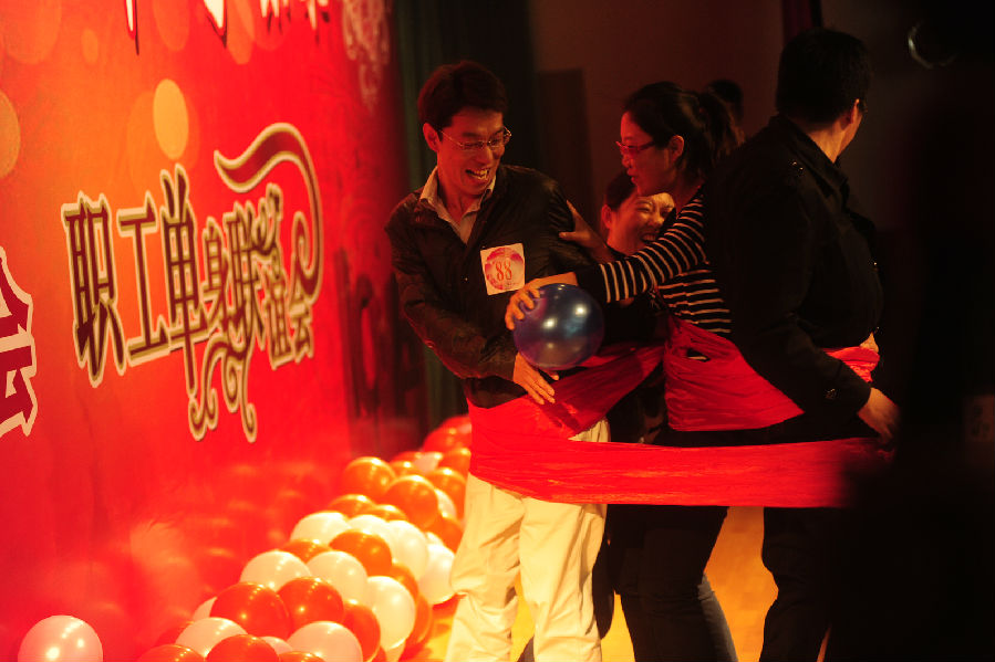 联谊会在温馨浪漫的氛围中拉开帷幕。180余名职工分为9组围圈而坐,通过精心设计的美丽指尖秀、心有千千结、心有灵犀、姻缘一线牵、爱情大转盘等互动游戏,让现场的单身职工们迅速相互熟识,互相寻找心仪对象。最后设计的“真情告白”环节,许多单身男青年勇敢地拿起玫瑰花,向心仪的姑娘表白,掀起了联谊会一次又一次的高潮。