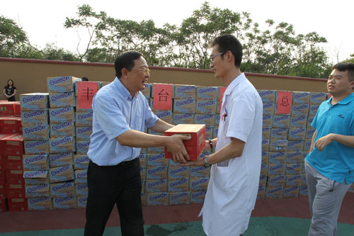 为做好高温天气防暑降温工作,有效预防和控制高温中暑及高温作业引发的各类事故,切实维护劳动者的职业安全和身心健康权益,7月10日下午,丰台区总工会相关负责人一行,来到纪念全民族抗战78周年暨“伟大胜利历史贡献”主题展览活动指挥部慰问,送去了1000余箱矿泉水、九龙斋、冰红茶和绿茶,拉开了丰台区总工会工夏季“送清凉”活动的序幕。