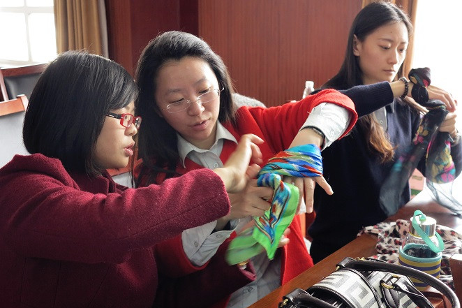 丰台区总工会聘请的授课老师为队员开设了一堂轻松愉快的礼仪讲座。授课老师利用两个小时的时间,为大家讲解并展示了丝巾各类佩戴的方法及礼仪规范,并当场对队员们的丝巾佩戴进行一一点评,现场气氛轻松活跃。