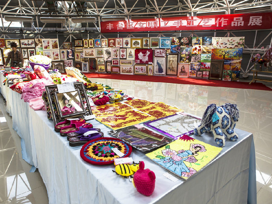 丰台区女职工手工艺作品展近日收官。近千种多件作品琳琅满目、种类繁多。既有十字绣、钻石画、豆画、油画、剪纸,也有布艺拼贴、彩泥创作、娟人制作、插花、贝壳拼贴画等品种。作品做工精湛,堪比专业水准。