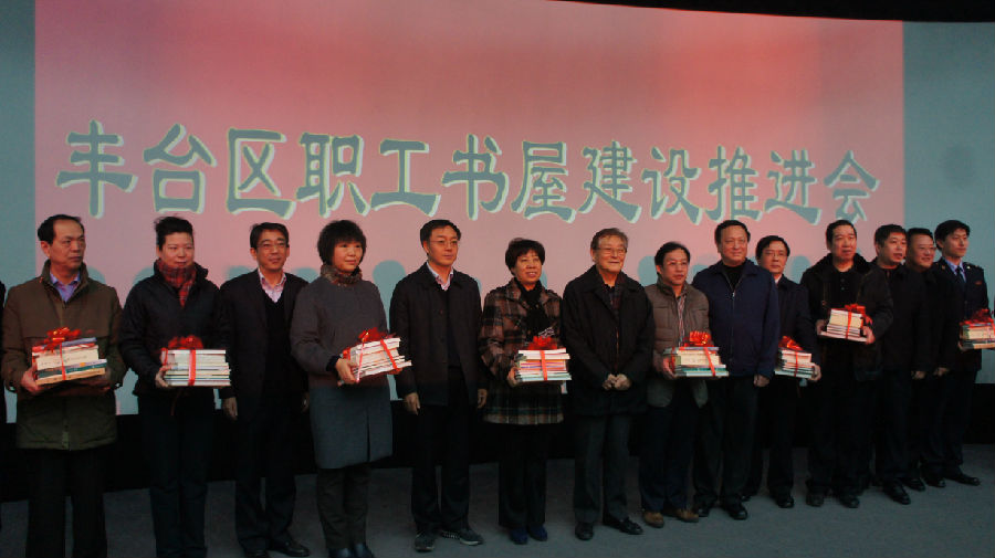 为做好职工书屋推进会暨“知丰台、爱丰台、奉献丰台”职工读书活动,丰台区总工会宣教部积极与区委、区政府多个部门联系沟通,为全区职工书屋争取了很多介绍丰台区历史、经济、社会、人文、民俗等书籍,各单位及领导个人都纷纷慷慨解囊,有老区委书记李英威赠送的《从教师到区委书记》;有区文明办赠送的《最美丰台人》,有区文委赠送《丰台历史文化丛书》较为详尽地介绍了丰台区的历史民俗和悠久文化,还有教委赠送的《发现校园之美》,长辛店街道赠送的《长辛店大街掠影》、《京南长卷古镇浓情》,汽车博物馆赠送的《汽车档案博览》丛书。丰台区直机关工会、教委工会、国税局工会、地税局工会等13家基层工会作为全区84家直属基层工会代表接受赠书。