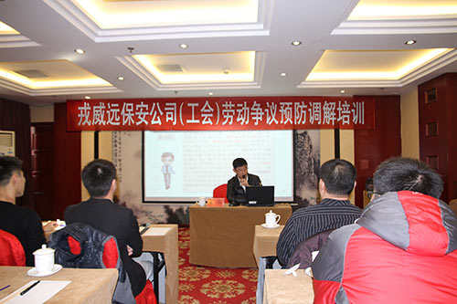 11月29日,戎威远保安公司工会在北京市工商联法律处的大力支持与帮助下,在大宝饭店会议中心举办了“戎威远保安公司劳动争议预防调解培训。邀请了朝阳区劳动人事争议仲裁委员会仲裁庭庭长王阳、北京市人社局调解仲裁处资深调解员安然,为大家授课。