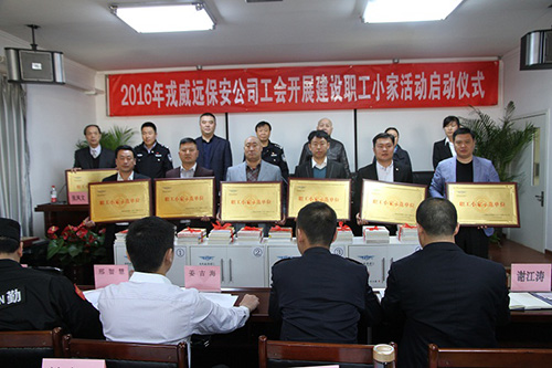 4月1日,丰台区戎威远保安公司召开“戎威远保安公司工会2016年职工小家建设活动启动大会”。丰台区总工会、北京市公安局保安支队、戎威远保安公司等相关负责人及保安员代表60余人参加会议。
