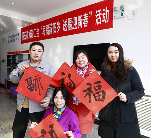 福田戴姆勒汽车工会负责人表示,这次的送福字活动只是工会服务职工的一个开始,2016年福田戴姆勒工会将一如既往的全心全力为职工服务,多办好事、实事,做职工的贴心人。
