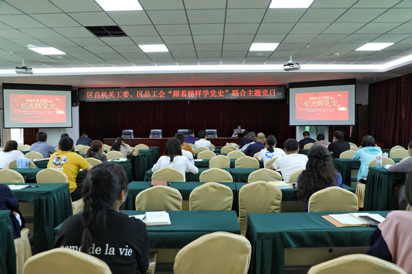 2.开展“机关榜样讲党史”主题宣讲活动。区总工会两名“机关榜样”分别以《从党领导中国工人运动的百年历史中汲取奋进力量》《忆光辉党史》为题为全体机关干部职工和工会专职社会工作者宣讲党史学习教育的重要作用意义。