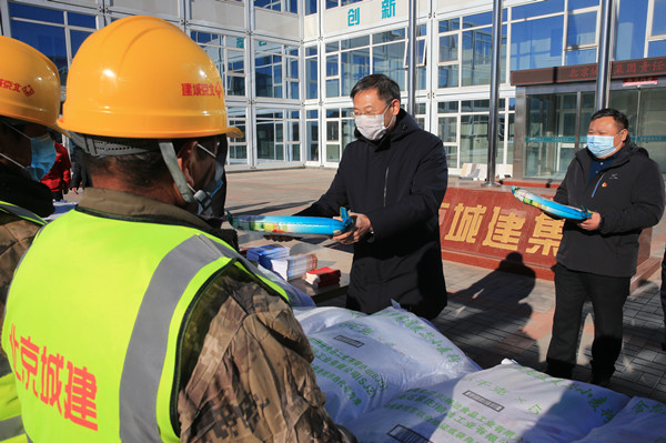 12月18日,平谷区人大常委会副主任、区总工会主席屈志奇慰问世界休闲大会及配套工程一线建设者,为他们送去米、面、油等慰问品,区总工会党组书记、常务副主席张艳革参加慰问。