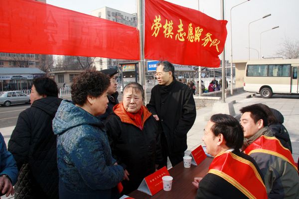 3月5日,石景山区总工会开展劳模学雷锋志愿服务活动。区总工会组织区内全国和北京市劳动模范以及律师、机关干部组成志愿者队伍,在石景山星座商厦门前为地区群众带来了法律知识讲解、环保知识咨询、房屋管道维修和皮鞋养护与辨别知识等服务活动。两个多小时的过程中,百余名群众与工会学雷锋志愿者们开展互动,咨询自己关心的问题,领取宣传手册,亲身参与各项活动。