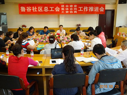 5月25日,石景山区鲁谷社区总工会组织辖区内21家基层联合工会的工作人员,召开了“鲁谷社区总工会建会建家、集体合同、工资协商工作推进会”,邀请石景山区总工会副主席出席会议,鲁谷社区总工会主席主持会议。
