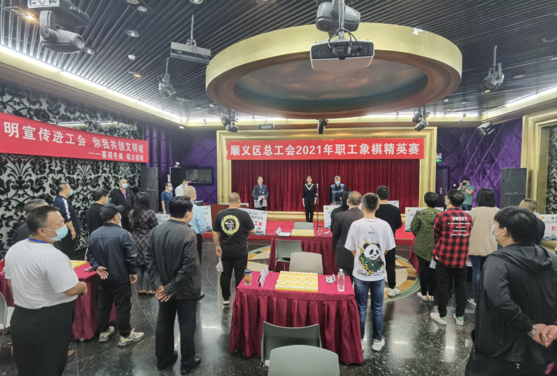 9月27日,由顺义区总工会主办的2021年职工象棋精英赛在工人文化宫多功能厅举办。来自全区10支代表队参加,顺义区总工会党组书记赵洪涛,党组成员、副主席姚竞宏出席了本次活动。