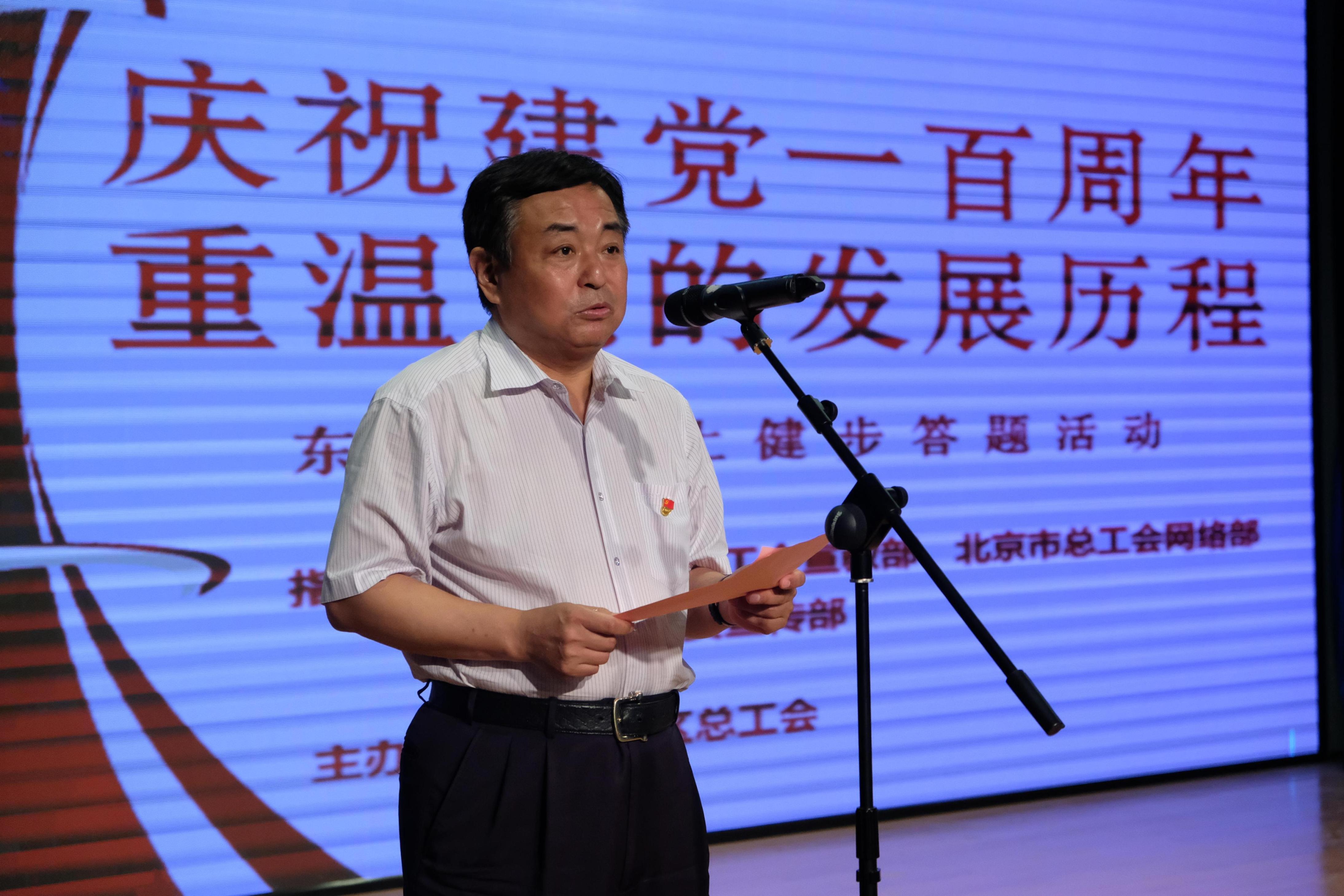 启动仪式上,赵茂杰书记对本次活动进行了介绍。许汇主席在讲话中指出:本次活动是党史学习教育的有效载体,是创建全国全民运动健身模范区,促进职工身心健康的有效形式,各级工会组织要坚持广泛动员,宣教结合,突出实效的原则,广泛宣传和发动职工积极参与;要把此次活动作为加强工会组织网上工会建设的契机,实现工会业务线下线上相互促进、有机整合的格局,吸引凝聚更多职工到工会组织中来,团结动员职工为加快推进“五个东城”建设贡献力量。