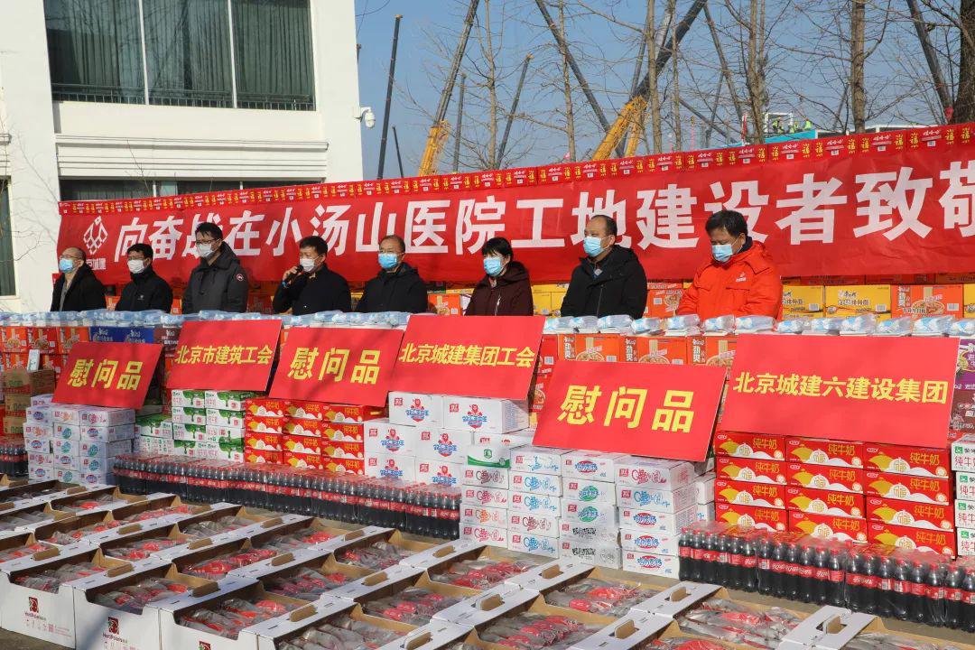 2月10日下午,集团公司党委常委、工会主席徐荣明,集团行政保卫部部长袁浩、集团工会副主席刘冬梅、李晓巍,土木工程总承包部党委书记刘月明,城建六公司党委书记杨玉春来到正在紧张施工的小汤山医院新建工程工地慰问建设者,为一线施工人员送去了防护物资、带去了“娘家人”的温暖。